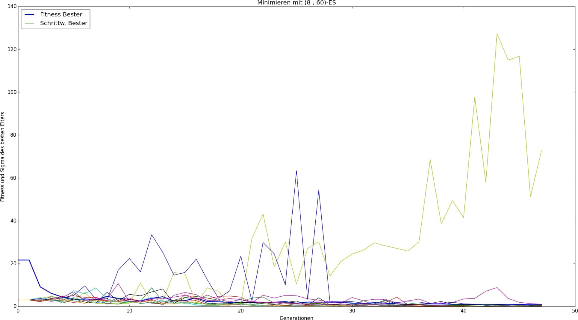Je komplexer, z.B. verrauschter und hochmodaler die Zielfunktion ist, desto mehr ist die (+)-Strategie der (,)-Strategie im Auffinden globaler Optima unterlegen, jedoch betreffend der Geschwindigkeit und Konvergenzsicherheit überlegen, was weitere Gründe sind, sich zunächst mit ihr zu beschäftigen.