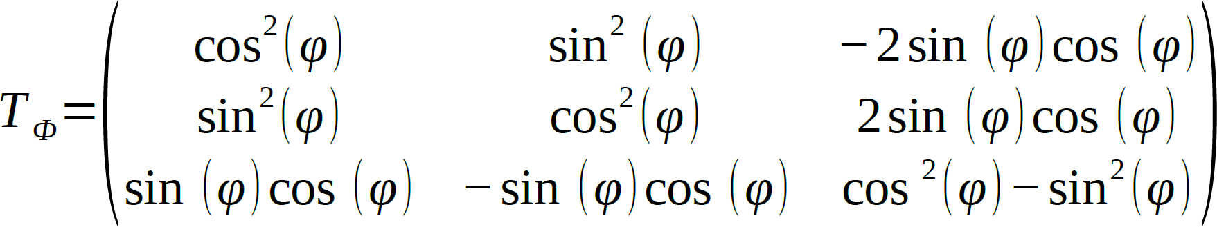 Die Steifigkeitsbeziehungen für jede Schicht sind hiermit bezüglich ihrer lokalen Koordinatensysteme beschrieben. Der nächste Schritt besteht darin, sie in ein globales Koordinatensystem des Verbunds zu überführen. Dies geschieht mittels der Transformationsmatrix TФ: